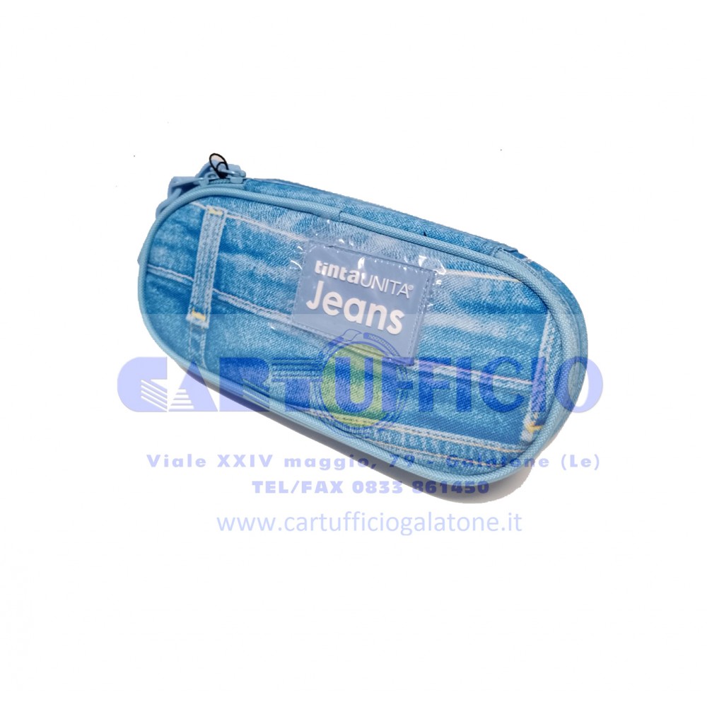 Astuccio Scuola Ovale 1 Zip Tinta Unita Jeans